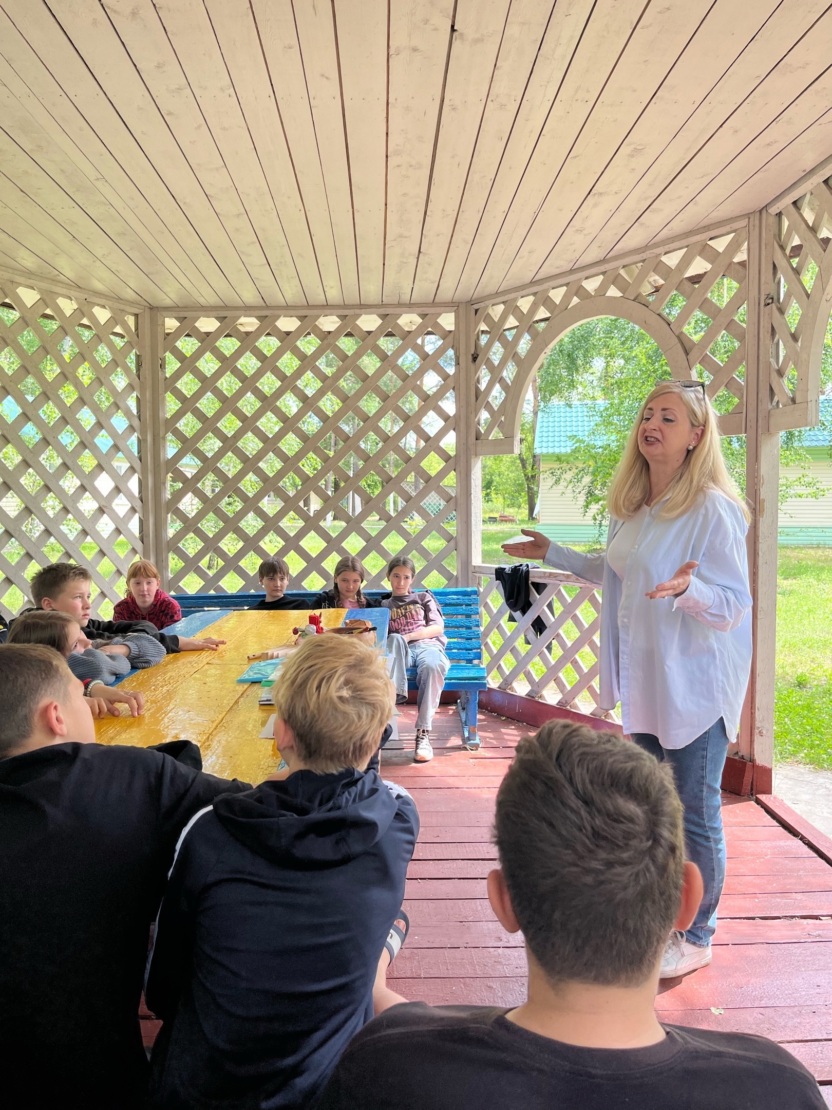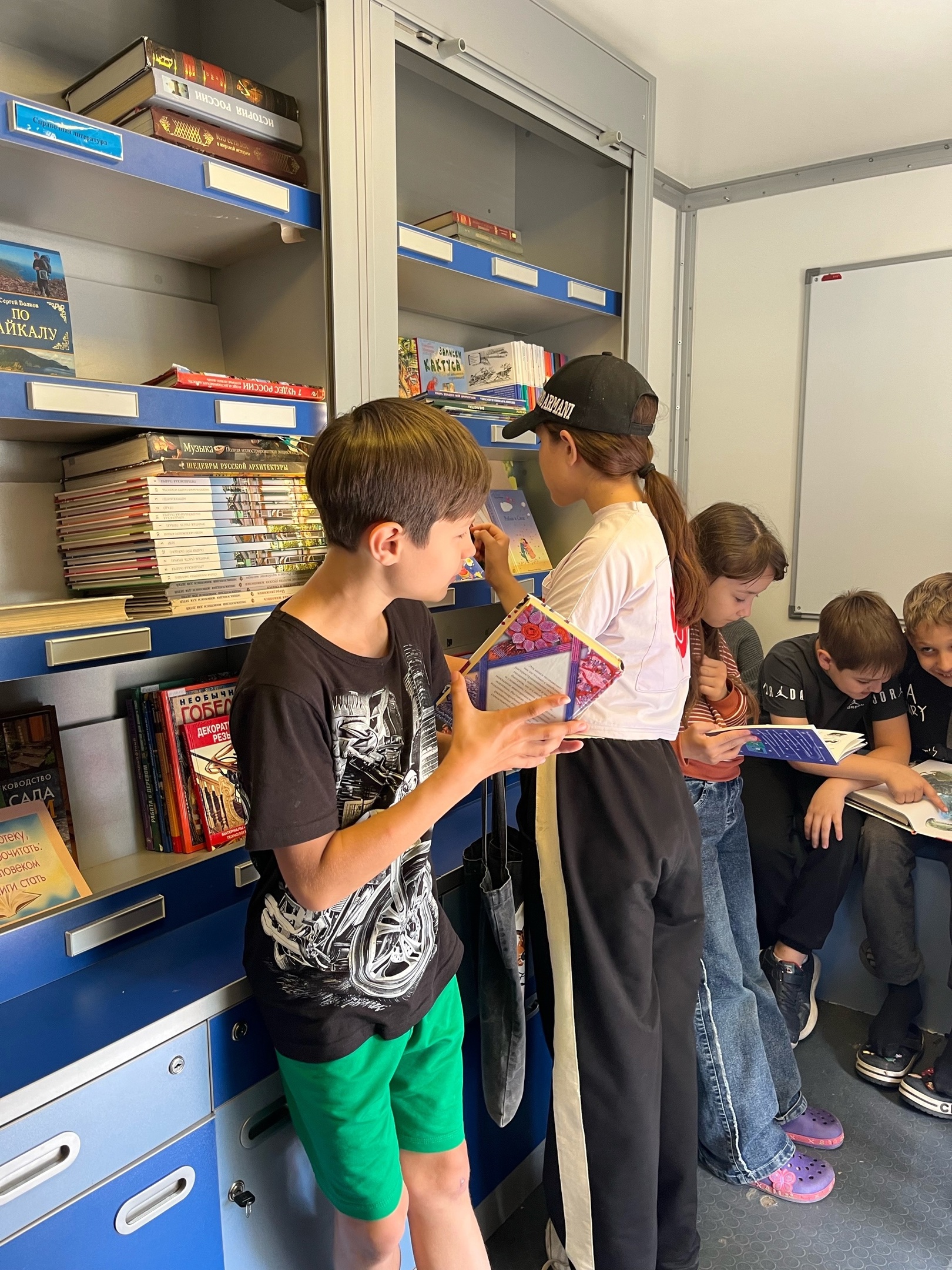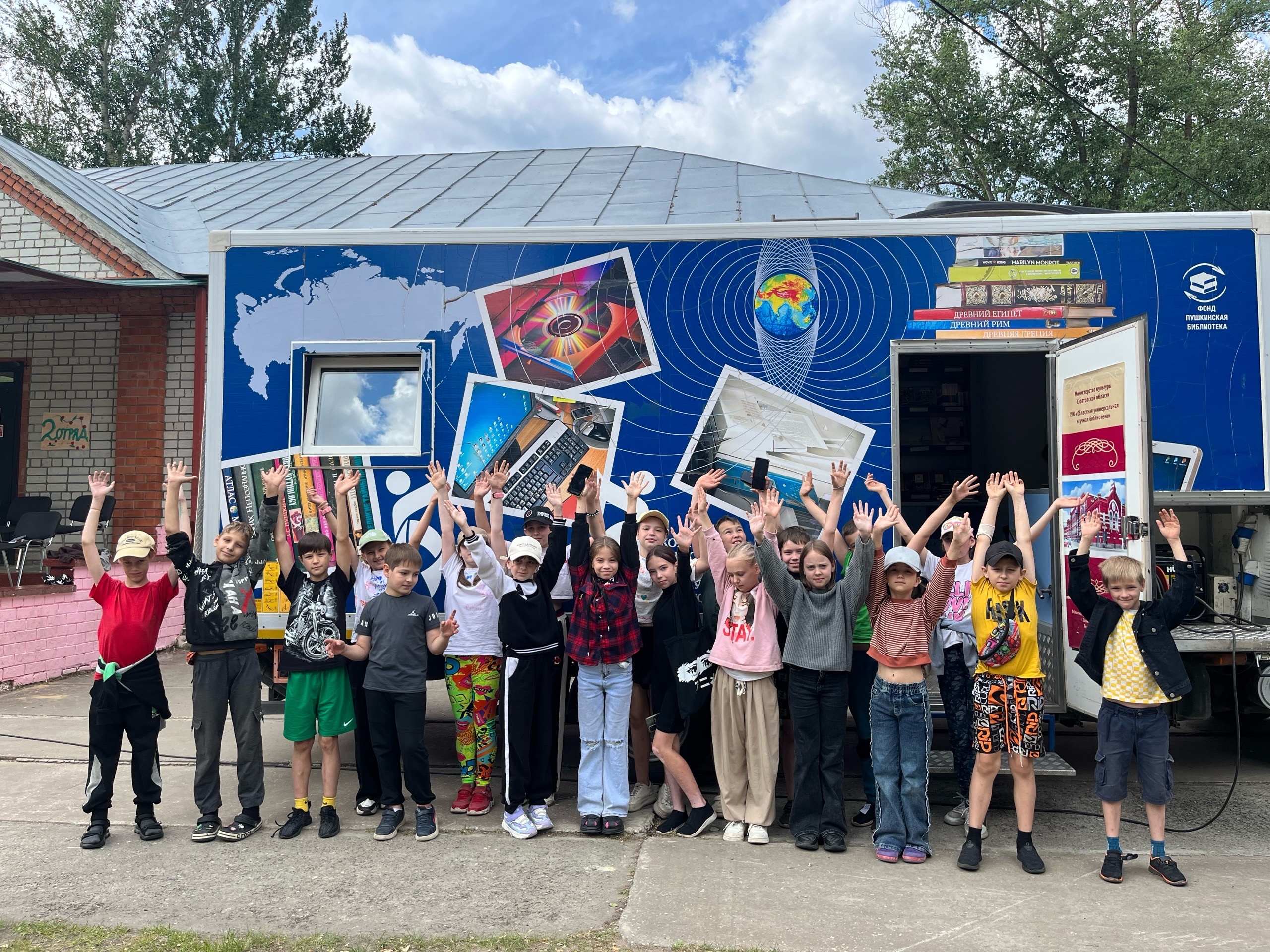 В этот день в лагерь приехала передвижная Областная Пушкинская библиотека. Сотрудники библиотеки рассказали о книжках, которые есть в библиотеке, рассказали о новых изданиях. И провели небольшие игровые викторины с ребятами младших и средних отрядов.
