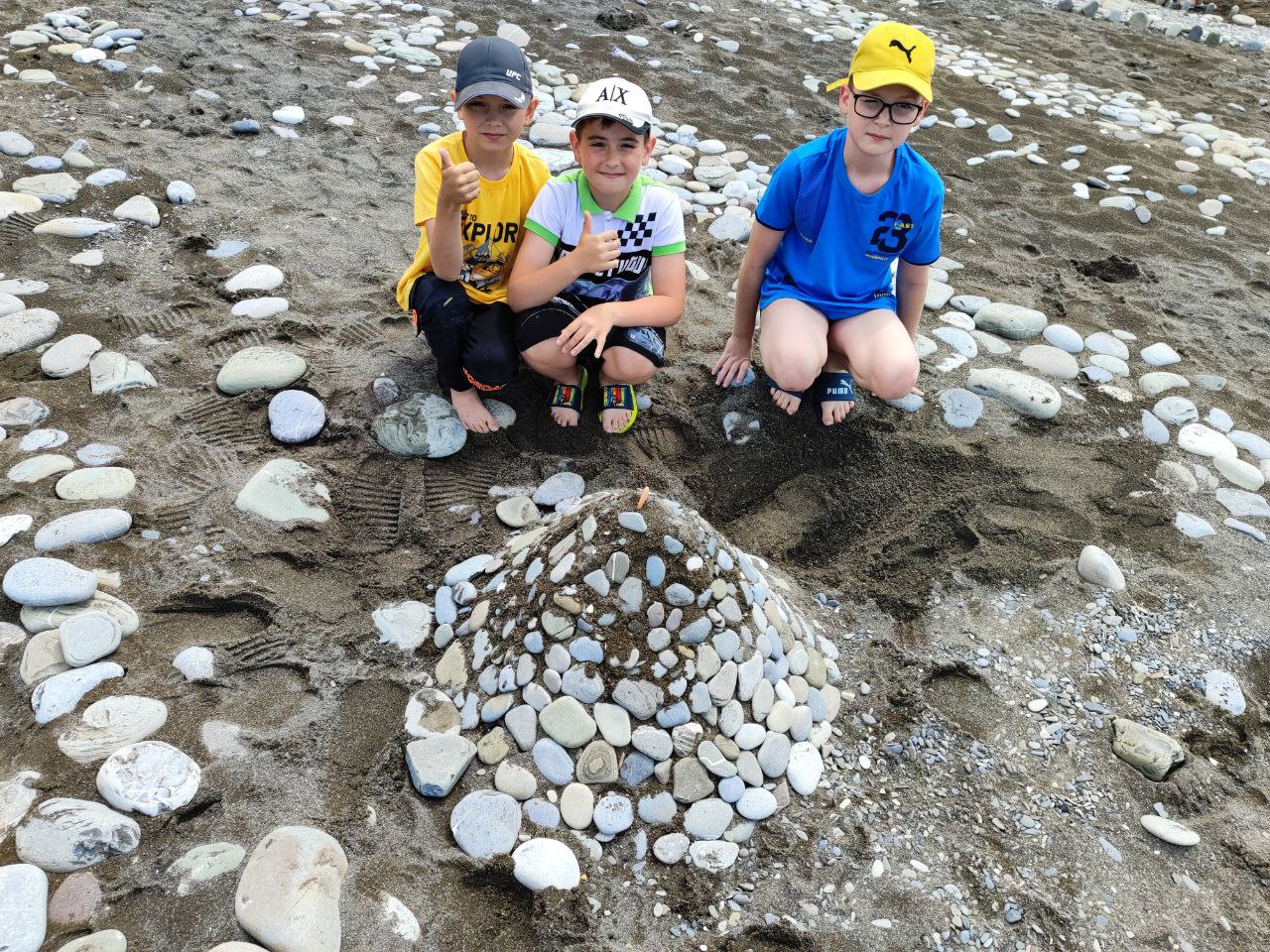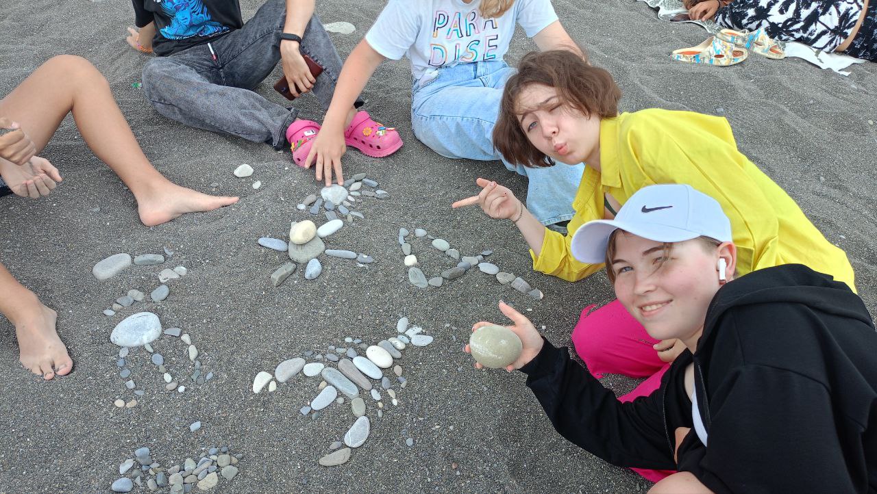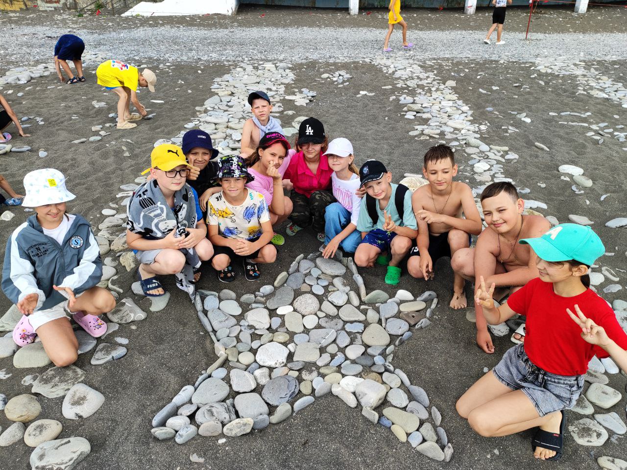 Дети лагеря создали удивительные 'Морские фигуры' из камней на пляже!"