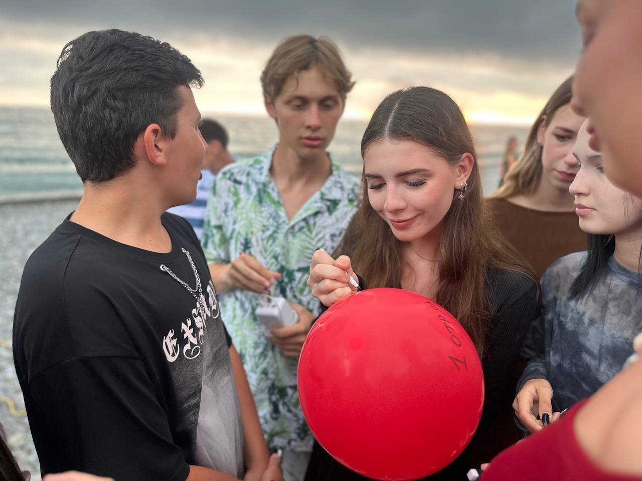 Шарики, превратившиеся в маленькие точки в небе, продолжают свой путь. А ребята, стоя на берегу, машут им вслед, зная, что частичка их сердца навсегда останется здесь, на этом берегу, у этого доброго и ласкового моря.