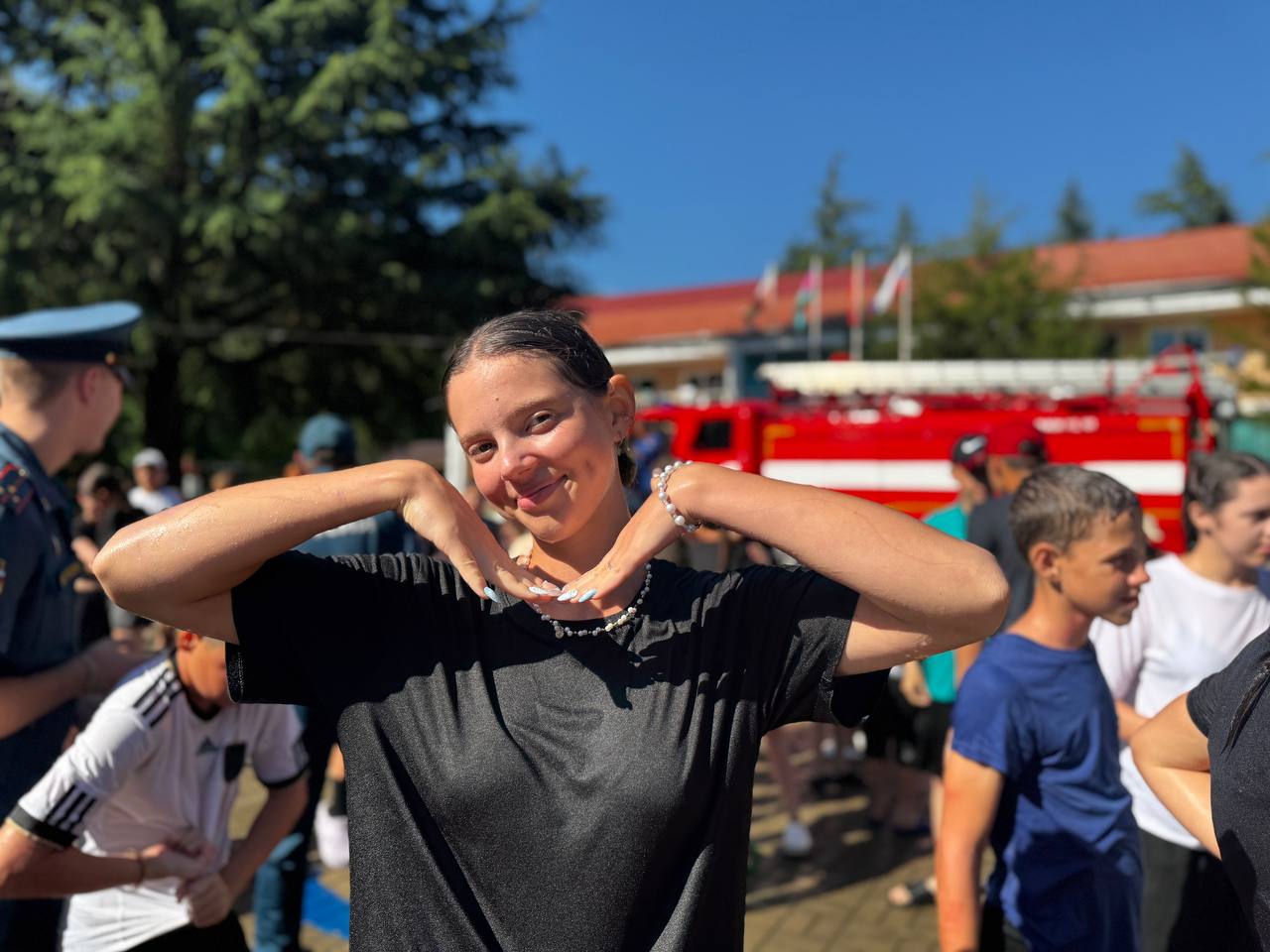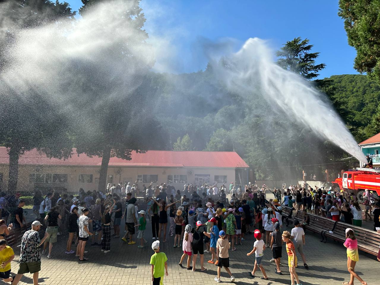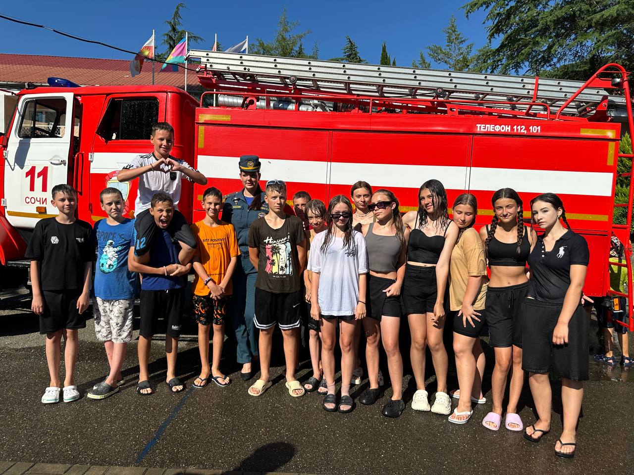 А кульминацией дня стала демонстрация работы пожарного гидранта. Мощная струя воды взметнулась в воздух, и под руководством сотрудников МЧС ребята с удовольствием обливались, визжали от восторга и весело провели время, закрепляя полученные знания на практике!