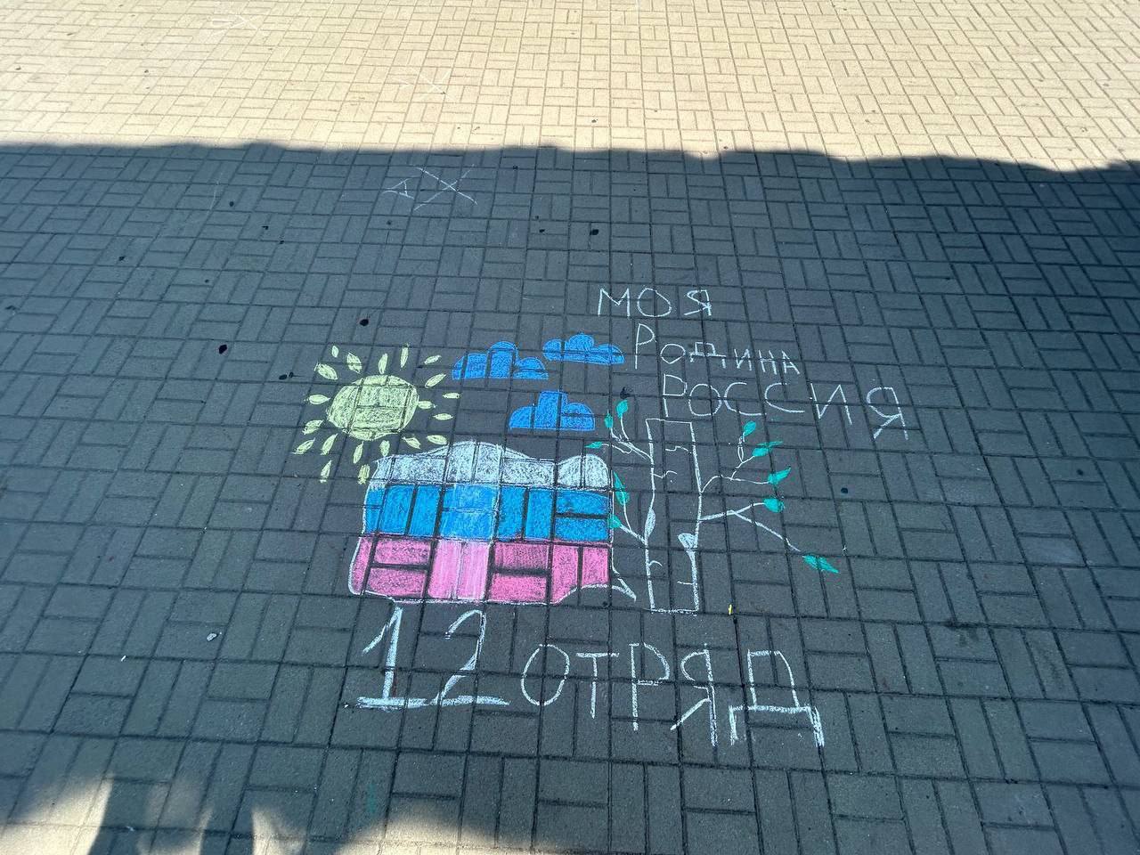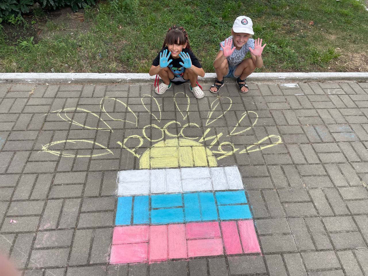 На днях в нашем лагере состоялась вдохновляющая акция, в ходе которой дети выразили свою любовь к Родине через творчество. Ребята взяли в руки мелки и, вооружившись яркими цветами, начали создавать уникальные рисунки на асфальте, посвященные теме «Моя Родина – Россия».