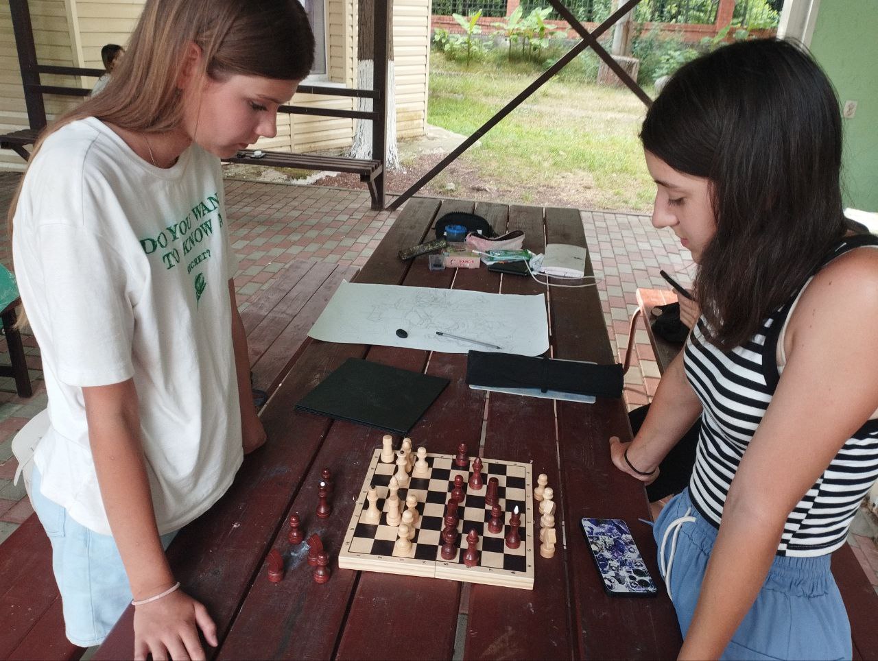 Сегодня в лагере прошло знаковое событие - шахматный турнир, объединивший детей всех возрастов в борьбе за звание лучшего шахматиста. Участники, как от младших, так и от старших отрядов, показали высокий уровень игры и стратегического мышления.