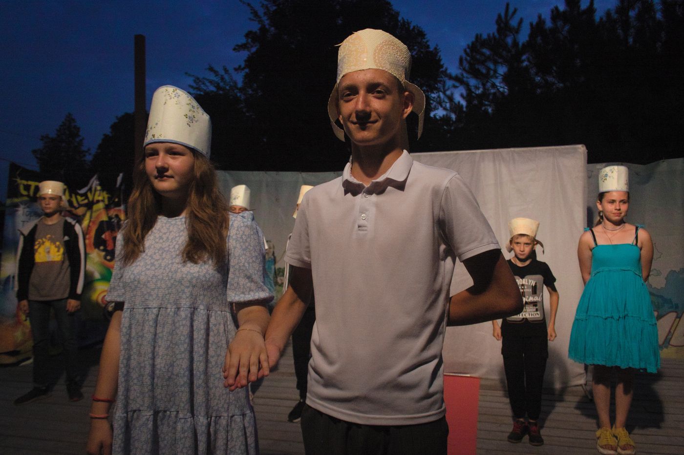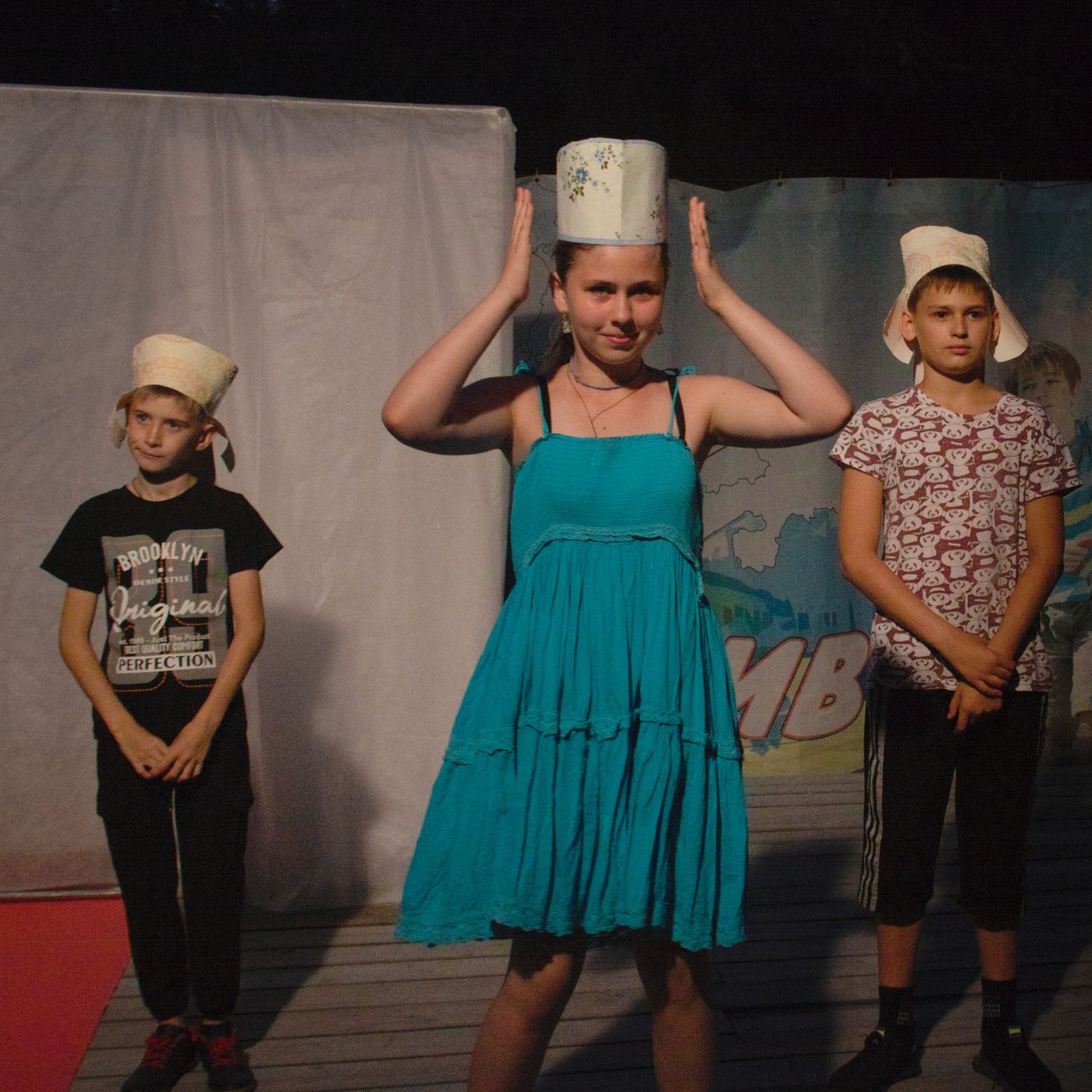 Вы знали, что всем известный кокошник имеет более ста разновидностей и каждая из них носит свое название? На вечернем мероприятии был представлены женские и мужские головные уборы. Коруна, перевязка, почелок, ряска были представлены девушками нашего лагеря. Тафья крестьянская и боярская, грешневик и малахай - все это не обзывательства, а головнве уборы, которые мальчики сделали своими руками и с гордостью представили публике.