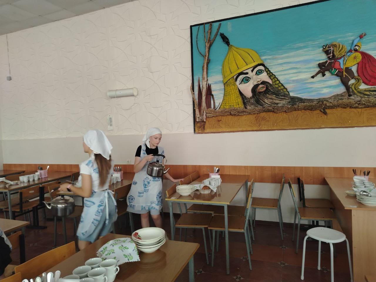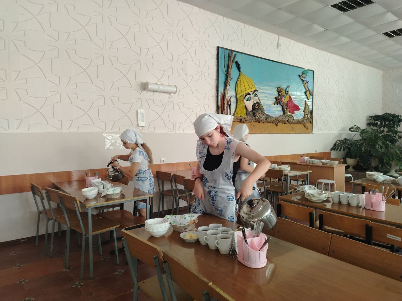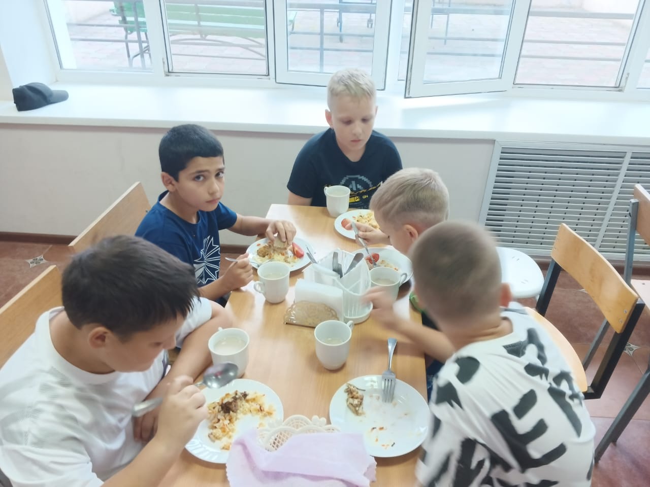 Наша столовая и мы в ней сытые и довольные. ДОЛ "Бштау"