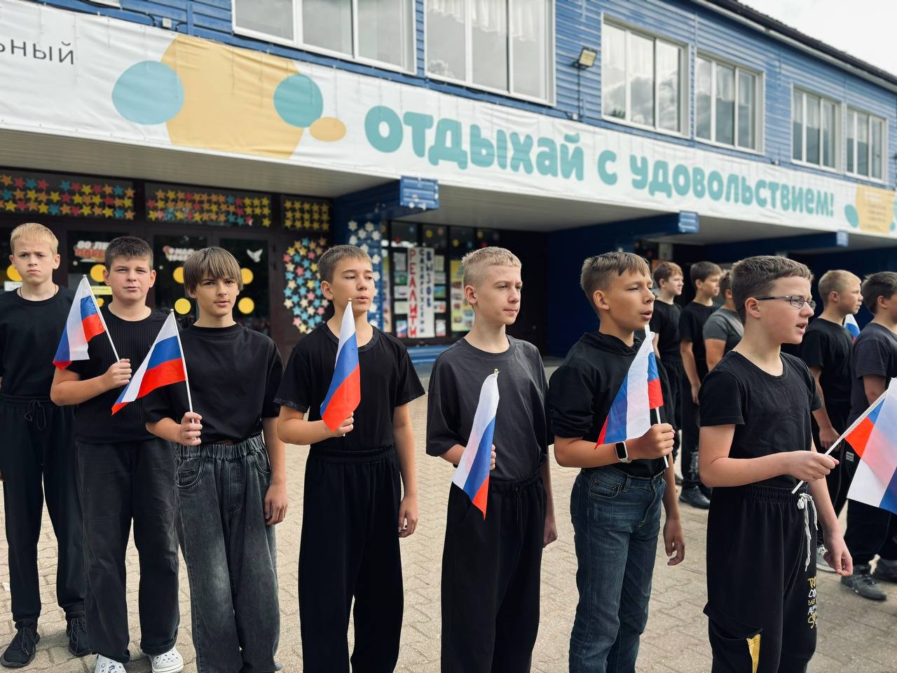 Ведущий напомнил ребятам историю российского флага: именно 22 августа 1991 года триколор стал символом новой России, а с 2000 года — официально закреплён федеральным конституционным законом.