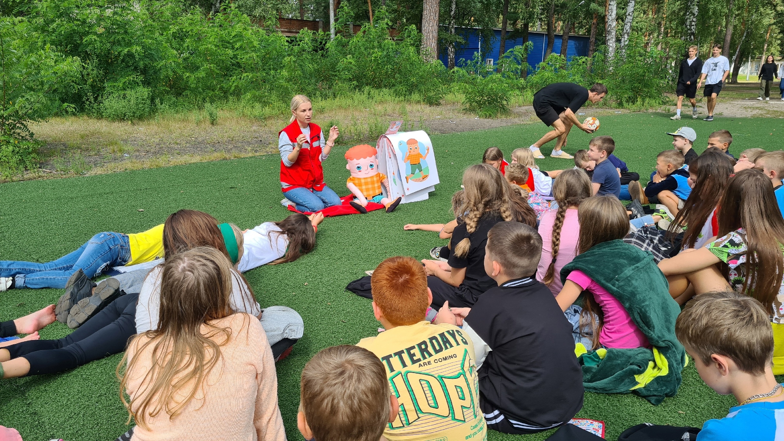 Дети от 6 до 11 лет узнали, что такое первая помощь и как её оказывать в разных ситуациях: когда ужалила оса и медуза, укусил клещ, при ожогах, порезах и ссадинах.