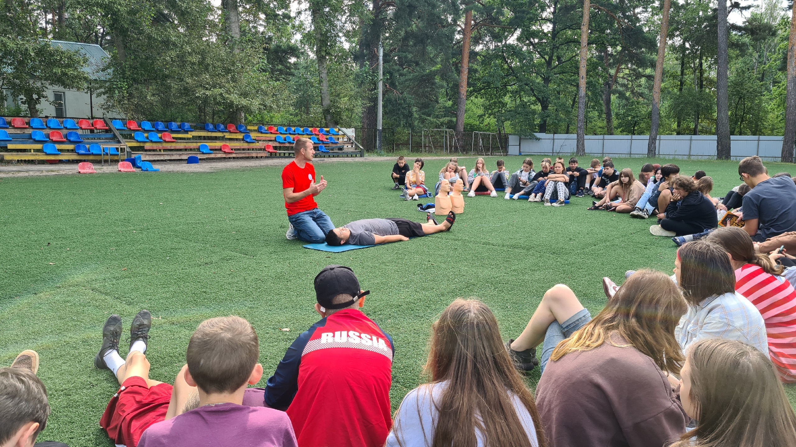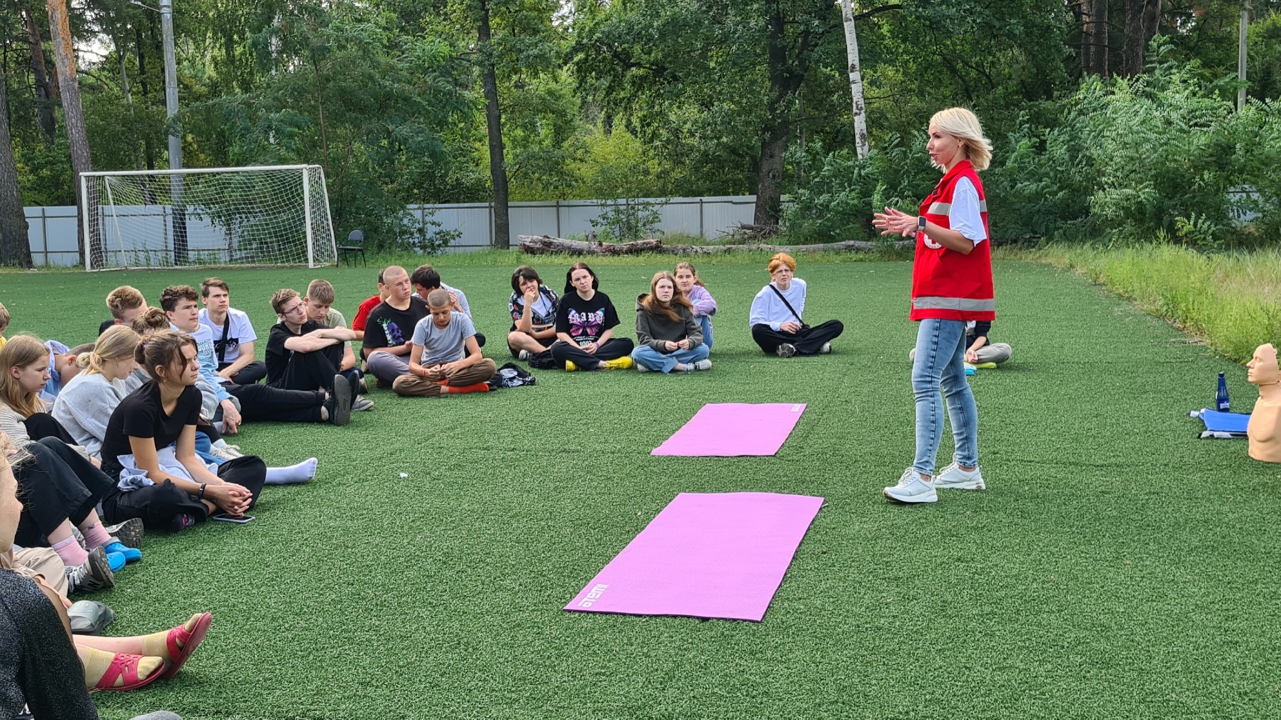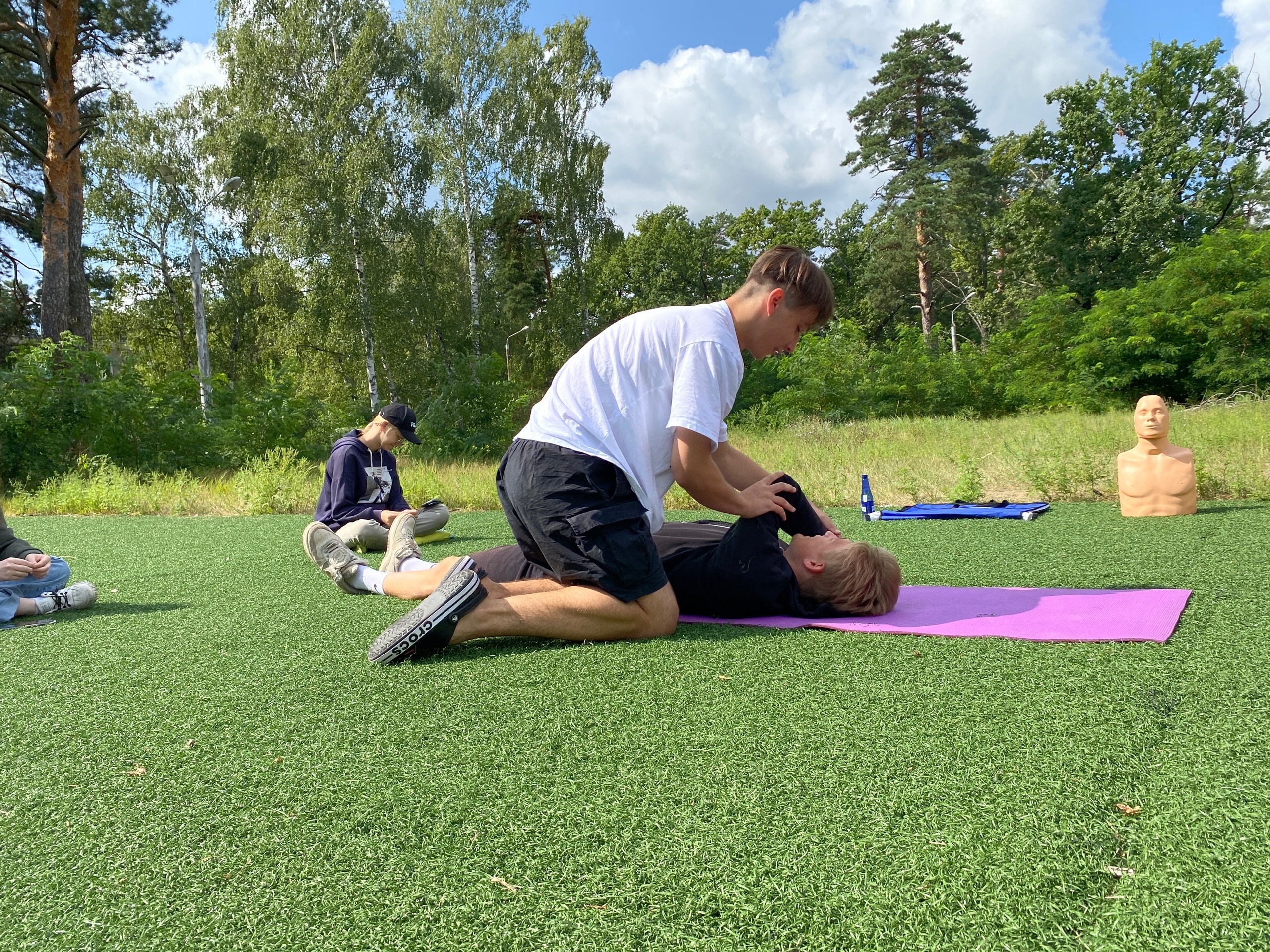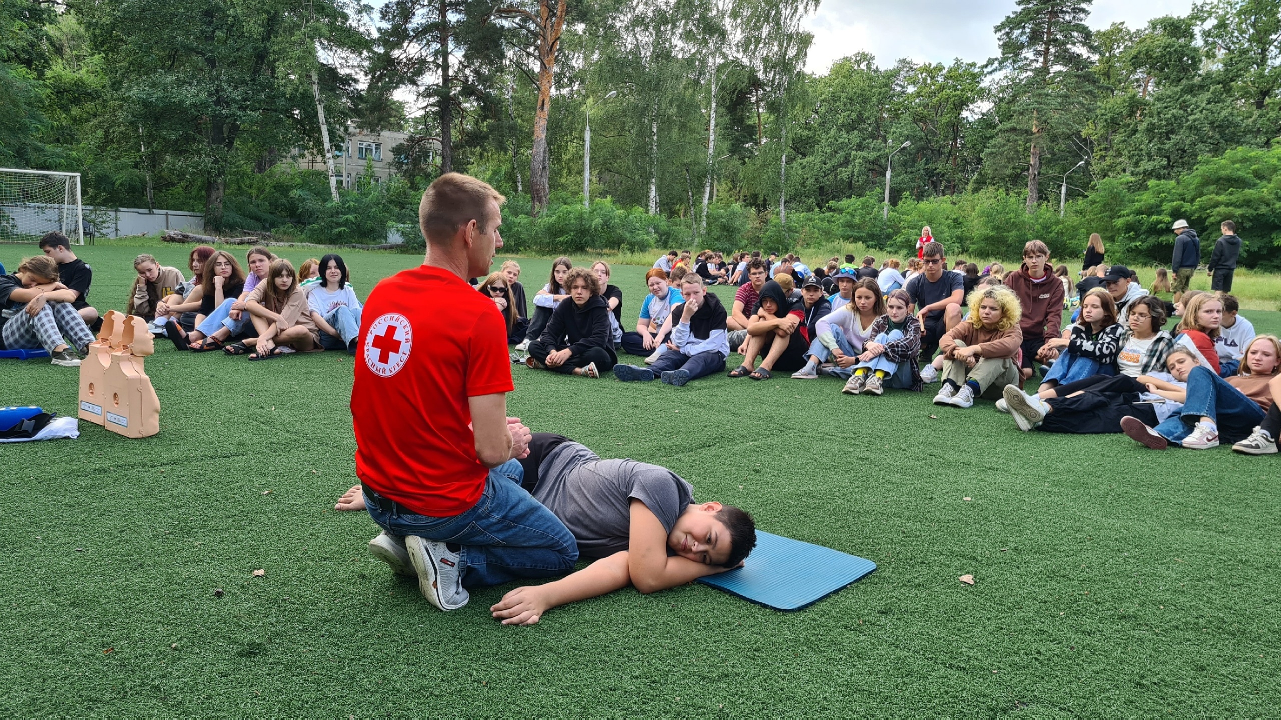 Ребята от 12 до 17 лет узнали о принципах оказания первой помощи, как правильно перевести пострадавшего в восстановительное положение. Разобрались, как оказывать первую помощь в случае, если пострадавший без сознания и не дышит. На практике с помощью учебных манекенов научились делать сердечно-легочную реанимацию.