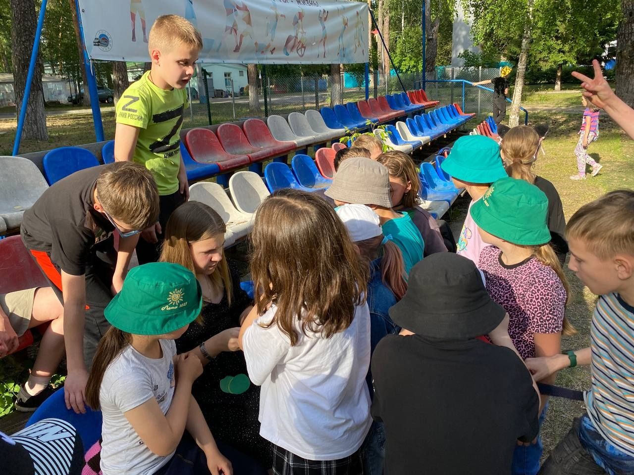 Ребята были разделены по командам согласно трём цветам светофора. Ведущий назначал серию забегов, где один из цветов был лидирующим и должен был догнать, как можно больше ребят с эмблемой другого цвета.