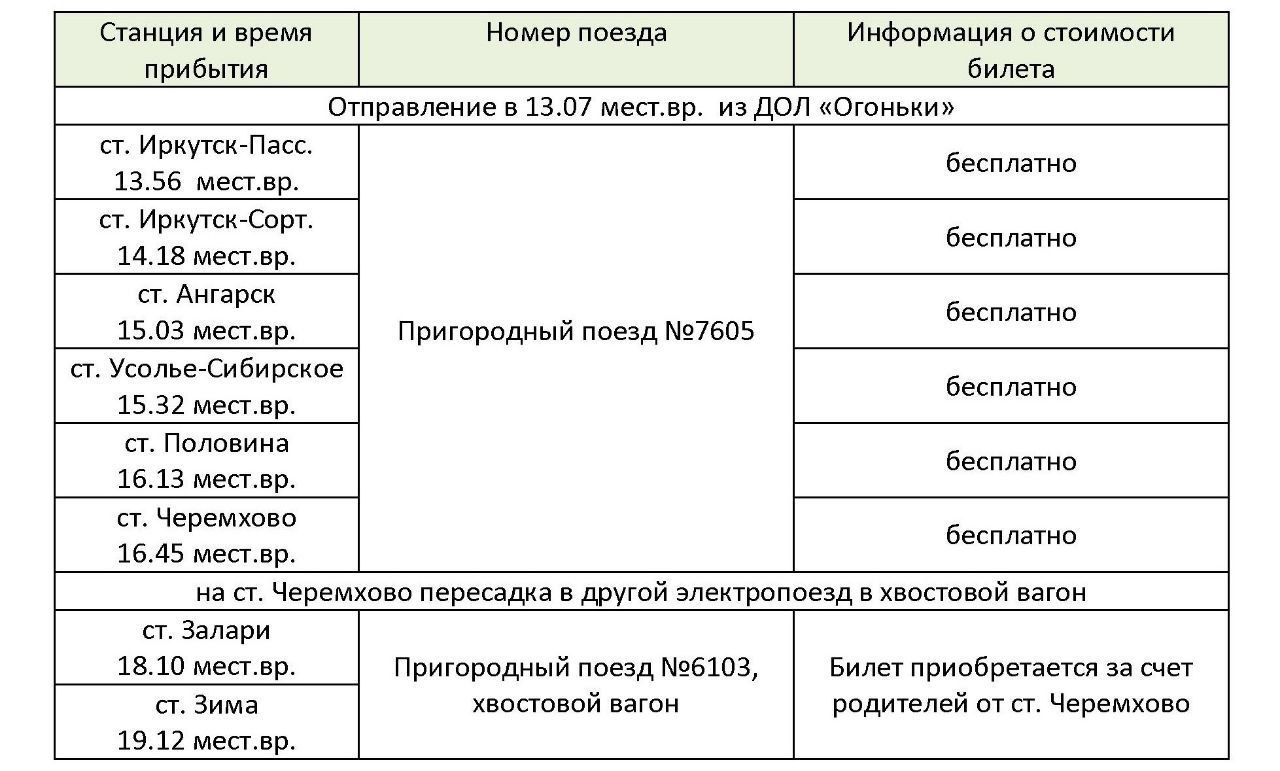 ДОЛ «Огоньки» - Восточно-Сибирская железная дорога