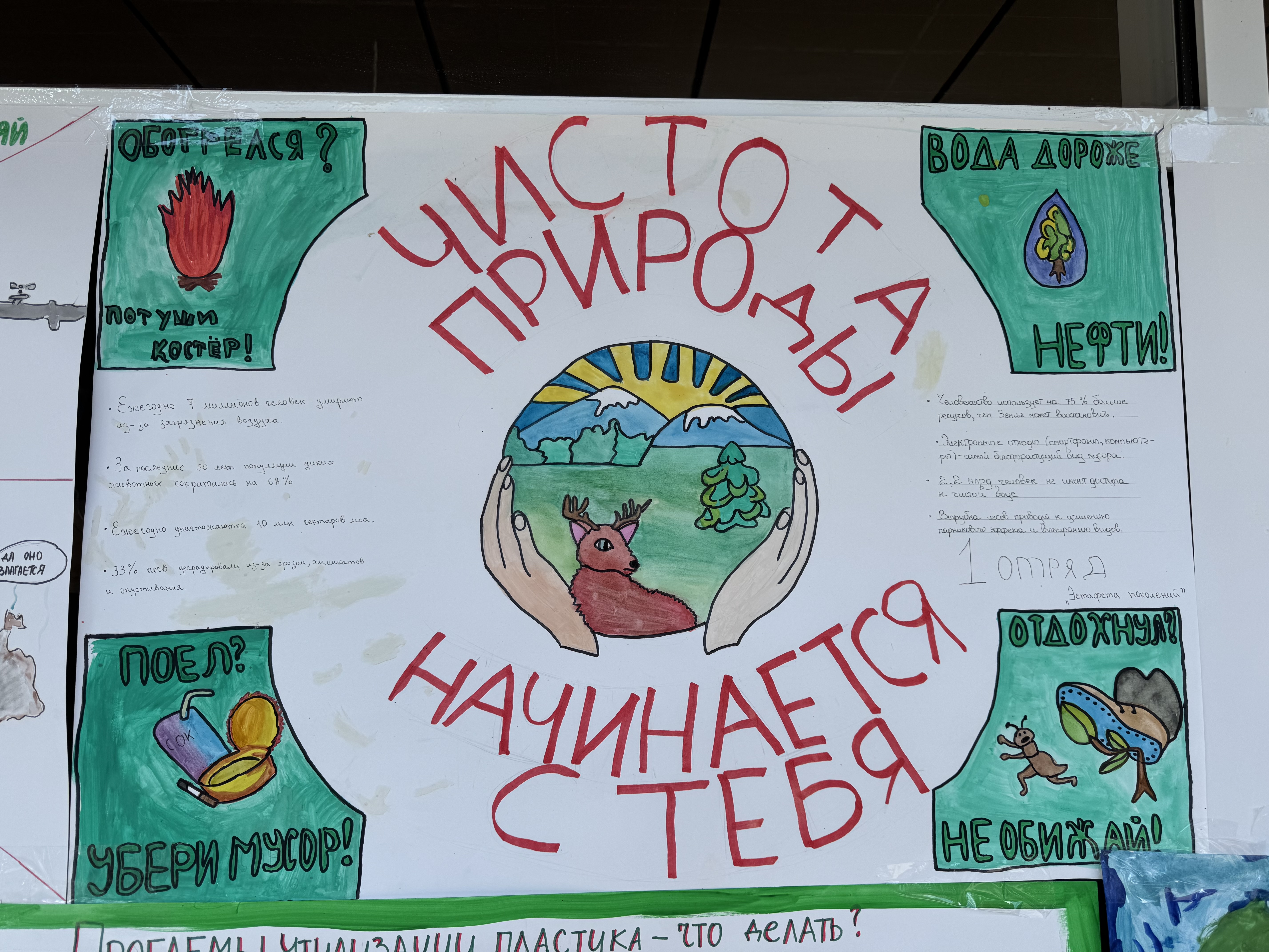 В этот день наши ребята подготовили яркие плакаты, в которых отразили актуальные экологические проблемы и предложили пути их решения. Такие творческие работы помогают детям лучше понять важность охраны природы и вдохновляют бережно относиться к окружающему миру. Пусть каждый из нас внесёт свой вклад в сохранение экологии!