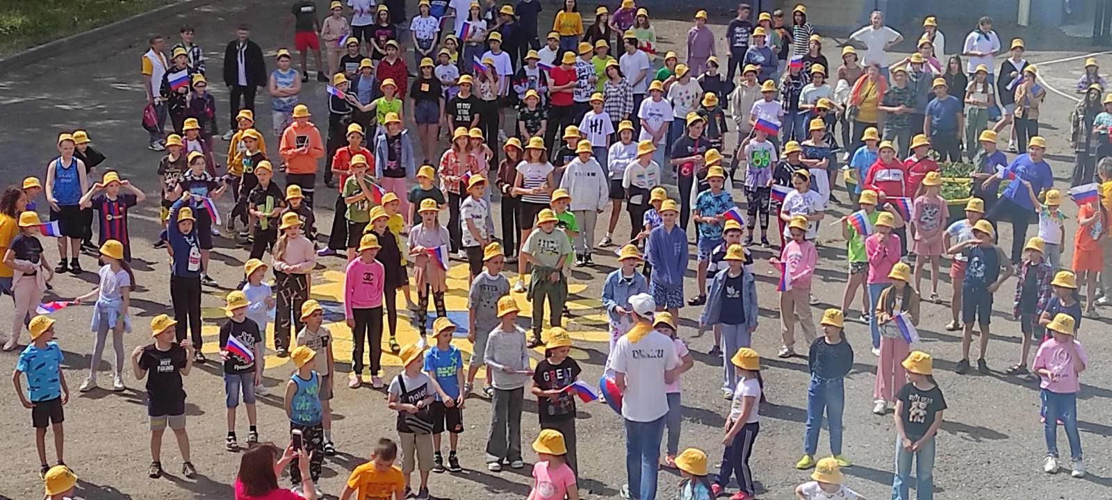Затем ребята переместились на площадь, где вожатые провели флешмоб «Край родной, навек любимый»: все вместе исполнили танец и признались в любви к своей Родине.