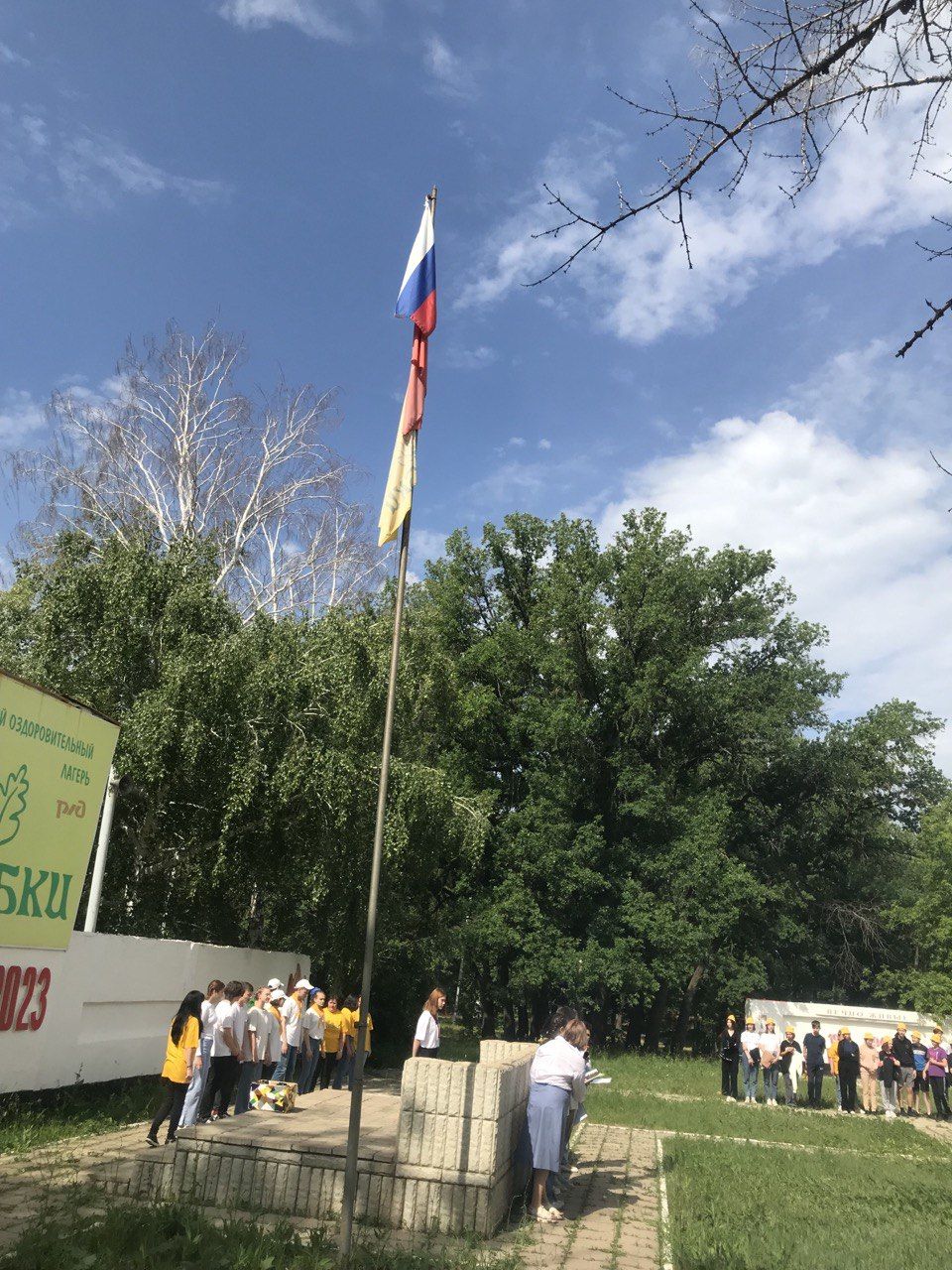 Солнечным утром весь лагерь собрался на линейку открытия смены и летнего сезона 2023 года «Не крутите пестрый глобус». Торжественно подняли государственный флаг, исполнили гимн и дали старт программе "Страна железных дорог"