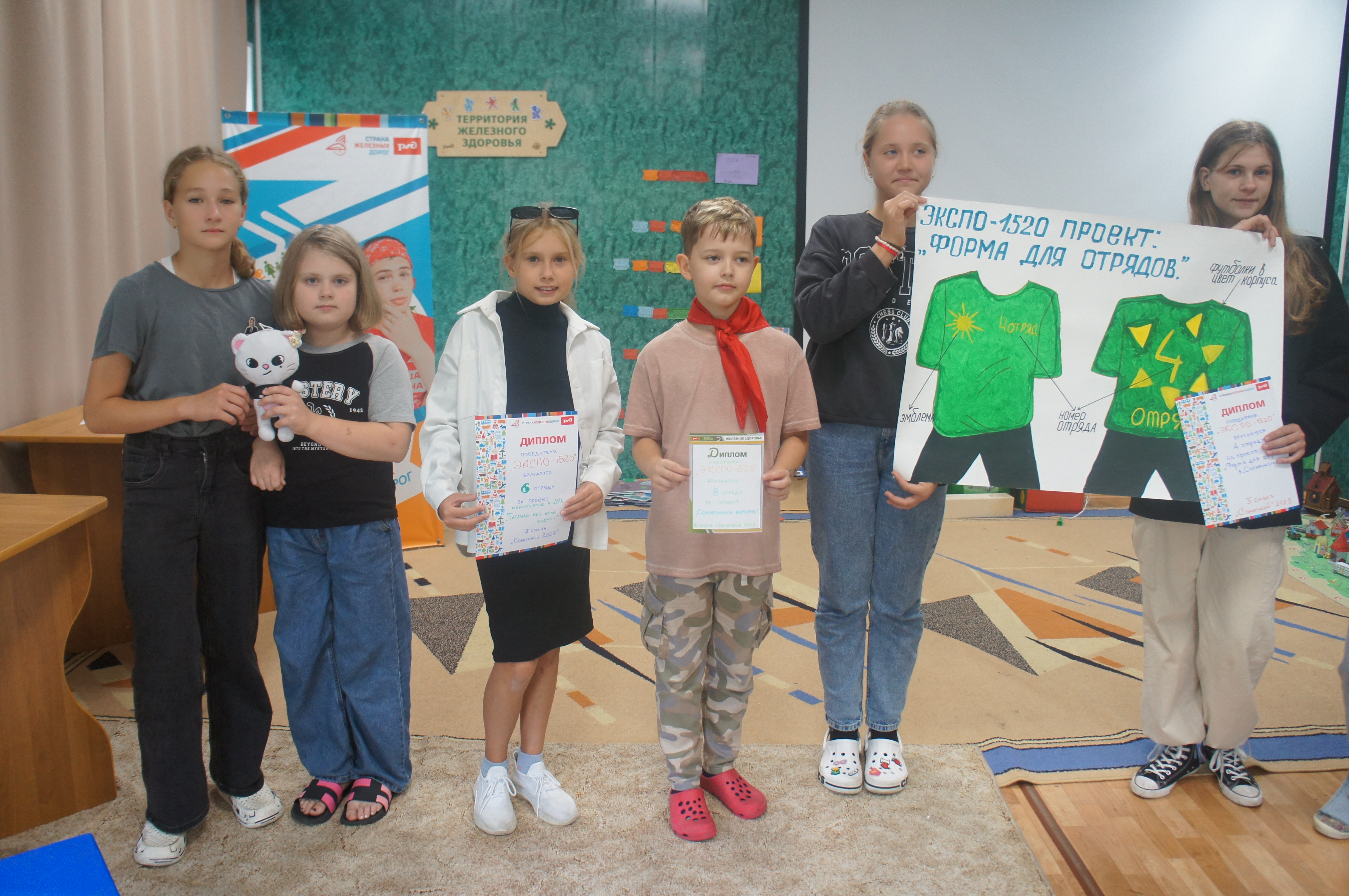 Лучшие проекты смены (индивидуальные и командные) представлены. Темы выбраны самые разнообразные: направленные на улучшения "Солнечного" -"Аллея славы железнодорожников фронтовиков в ДОЛ", "Солнечная форма отрядов", "Веселый паровоз" и для улучшения компании РЖД - "Игровой вагон" и для заботе об экологии и украшения собственного быта - "Карандашница "Вторая жизнь". Все проекты оценены по достоинству, а самые интересные идеи лета будут поддержаны в будущем. Лучший проект будет представлен на Большом конкурсе лагерей. Возможно, именно эта лагерная смена позволит ребенку увидеть себя и изменить жизнь!?
