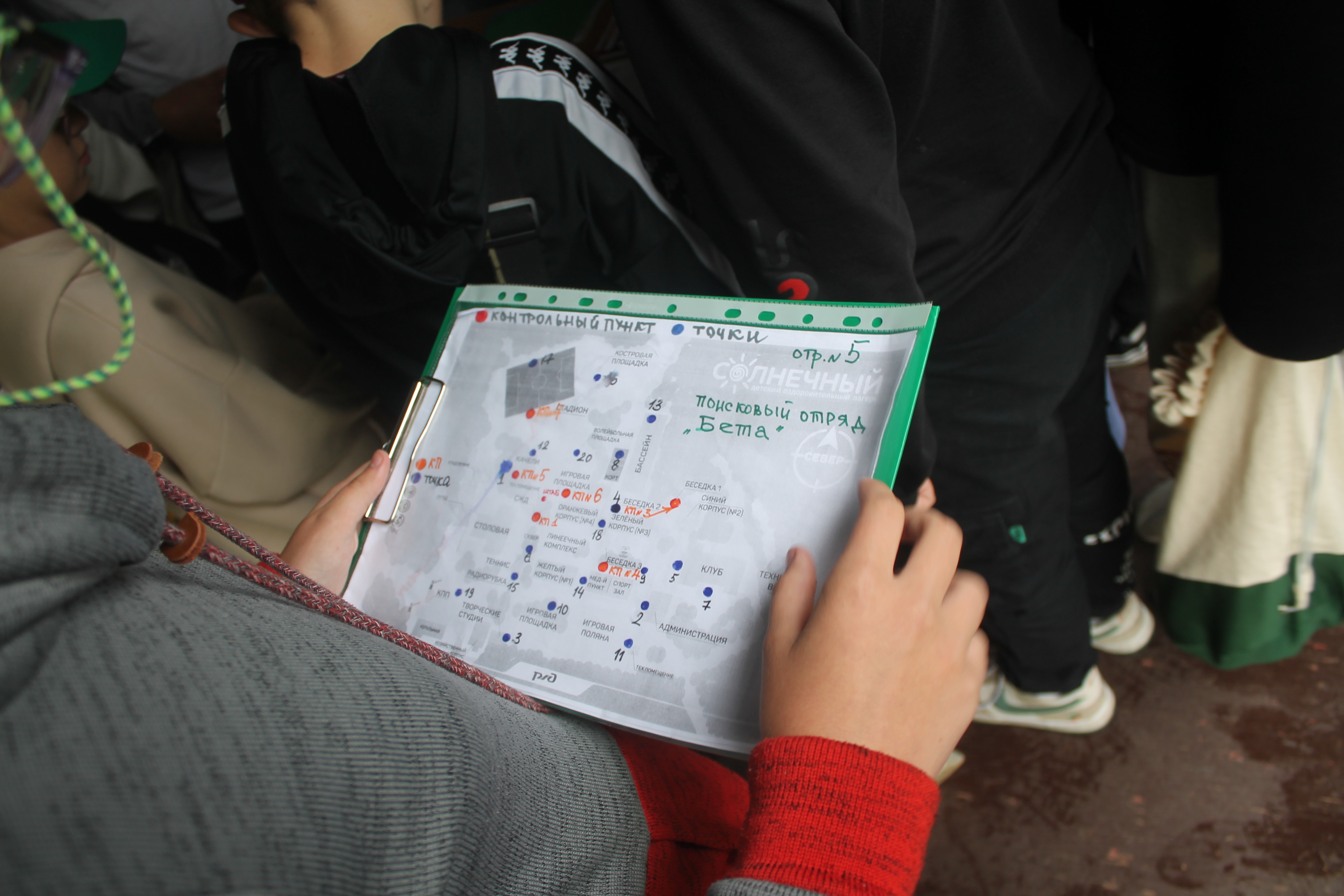 В ходе игры ребята пытались расшифровать послание, зафиксированное в нашем лагере. Поисковые отряды смело приняли вызов и отправились на выполнение заданий. На контрольных пунктах их ждали старшие товарищи из отряда "Фиксаторы" и маленькие "Связисты".