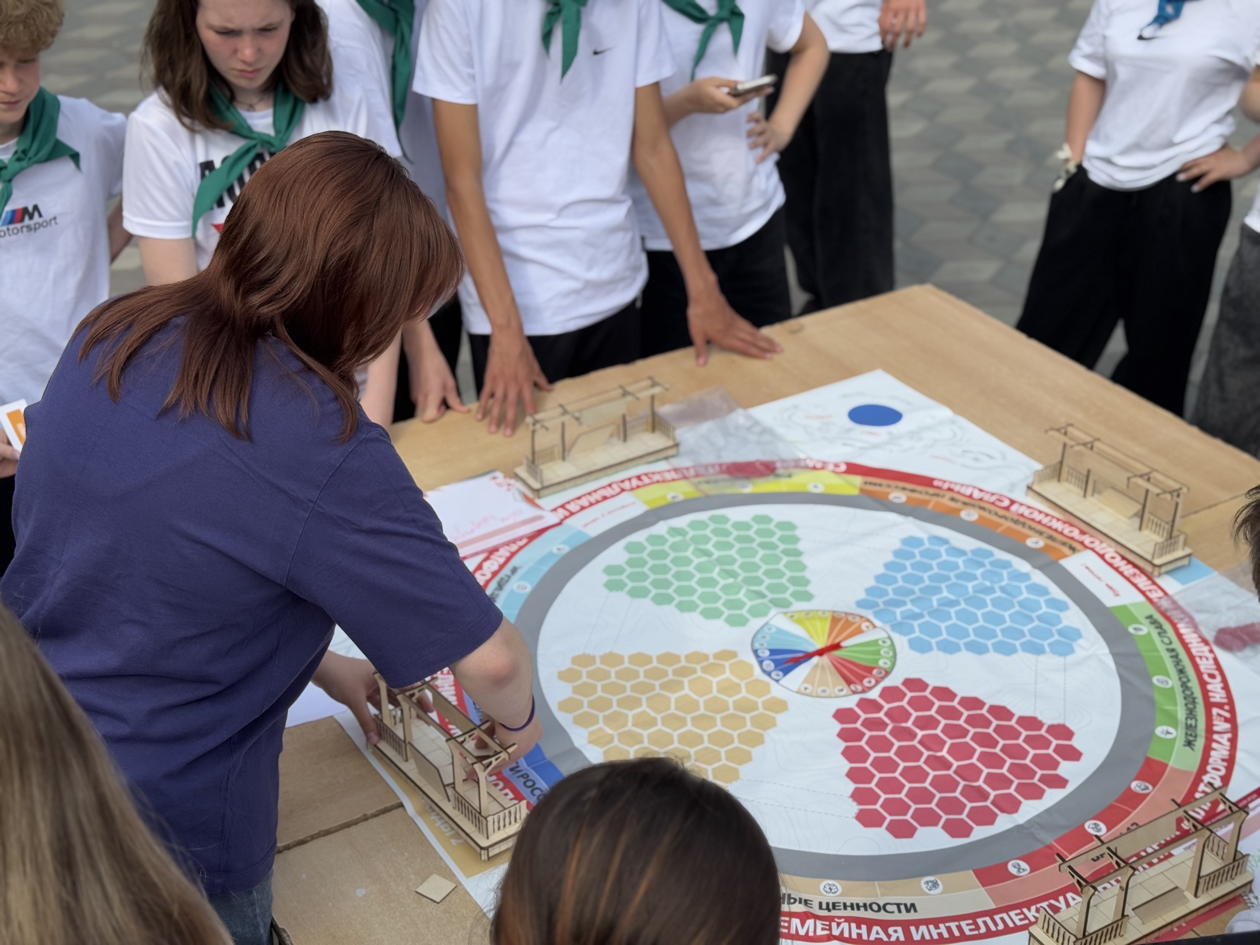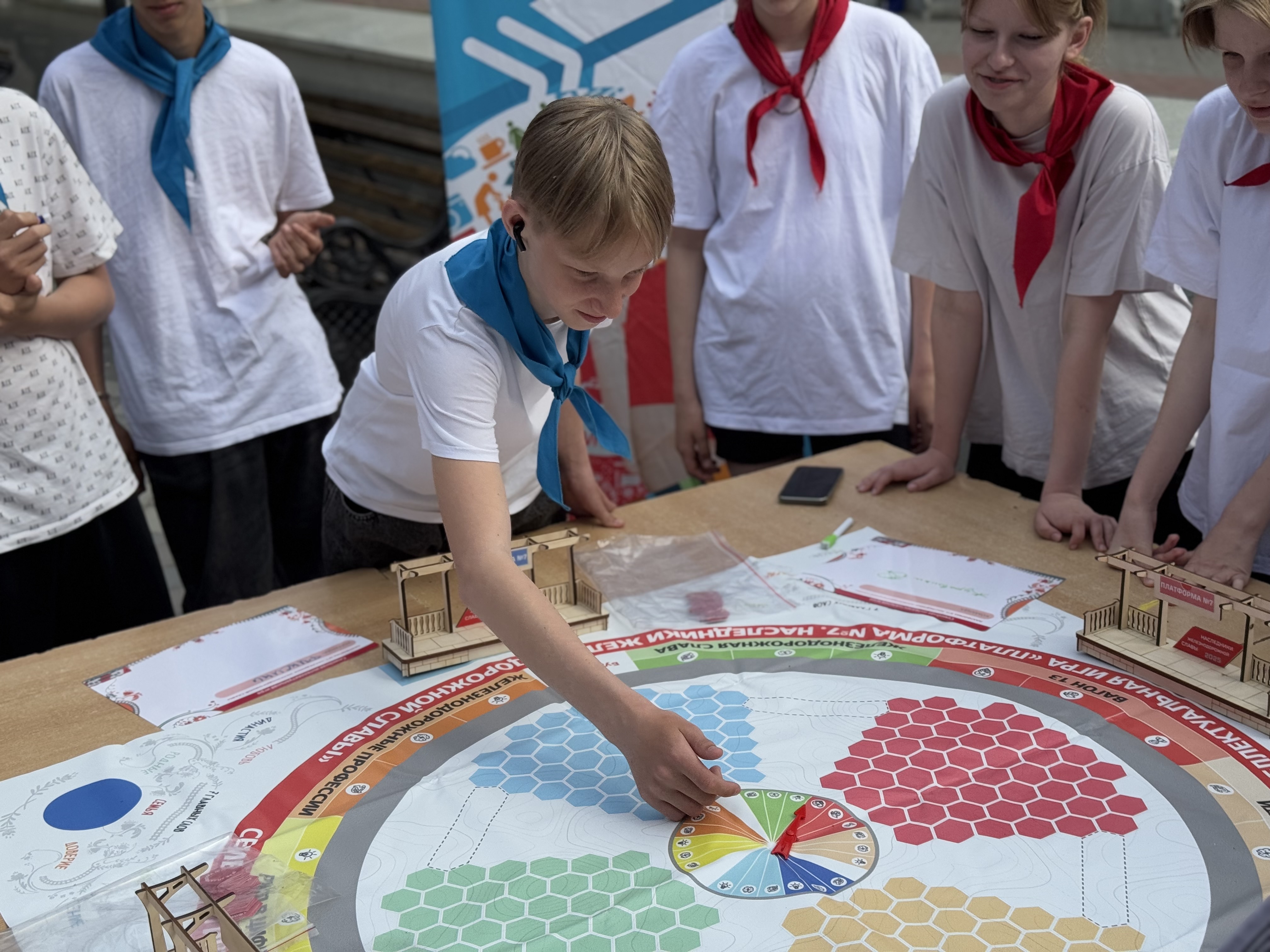 После этого игра перешла в общий этап — все отряды объединились, чтобы вместе пройти новые испытания и показать свои лучшие качества. Атмосфера была невероятно дружелюбной и энергичной, а ребята поддерживали друг друга и стремились к победе.