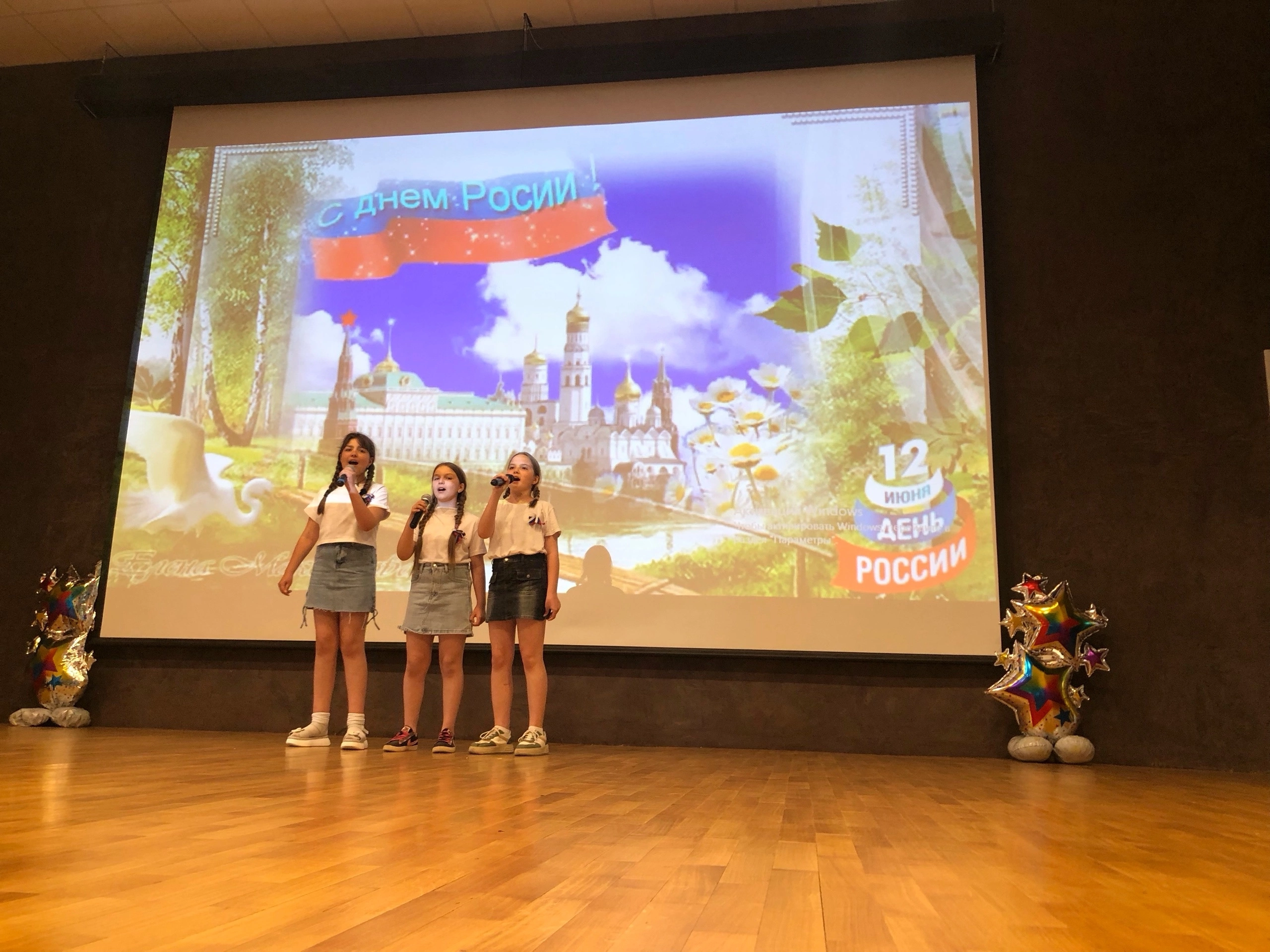 День начался с торжественной линейки, на которой мы дружно исполнили гимн Российской Федерации и поздравили друг друга с Днём России.