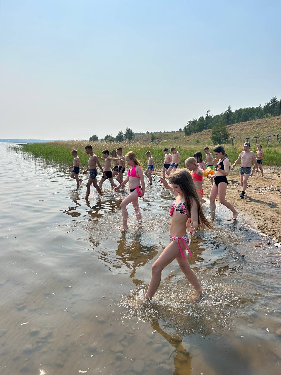 Солнце, смех и брызги воды – в лагере стартовал долгожданный купальный сезон! 🎉 С сегодняшнего дня ребята могут наслаждаться освежающей прохладой озера под присмотром опытных вожатых и спасателей.