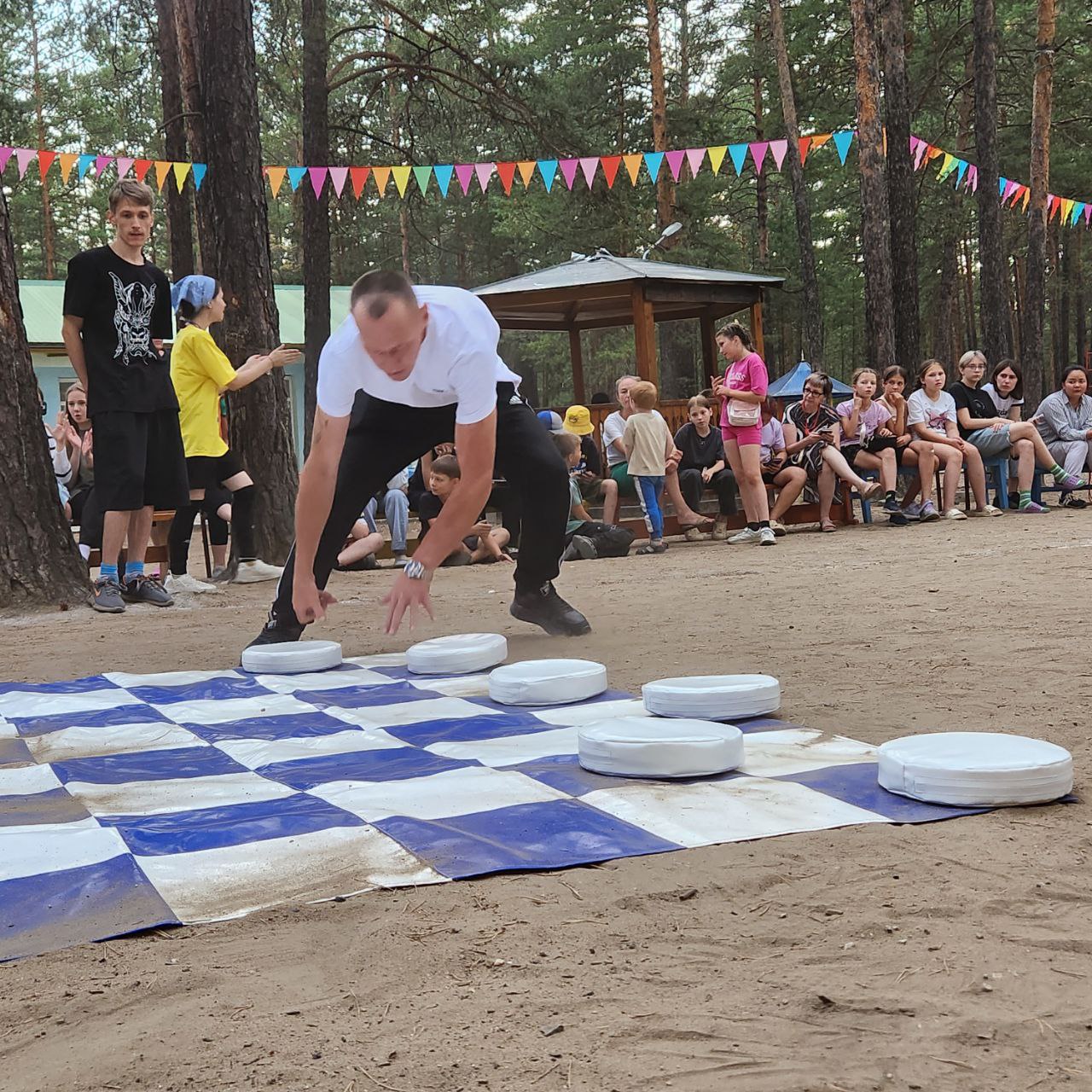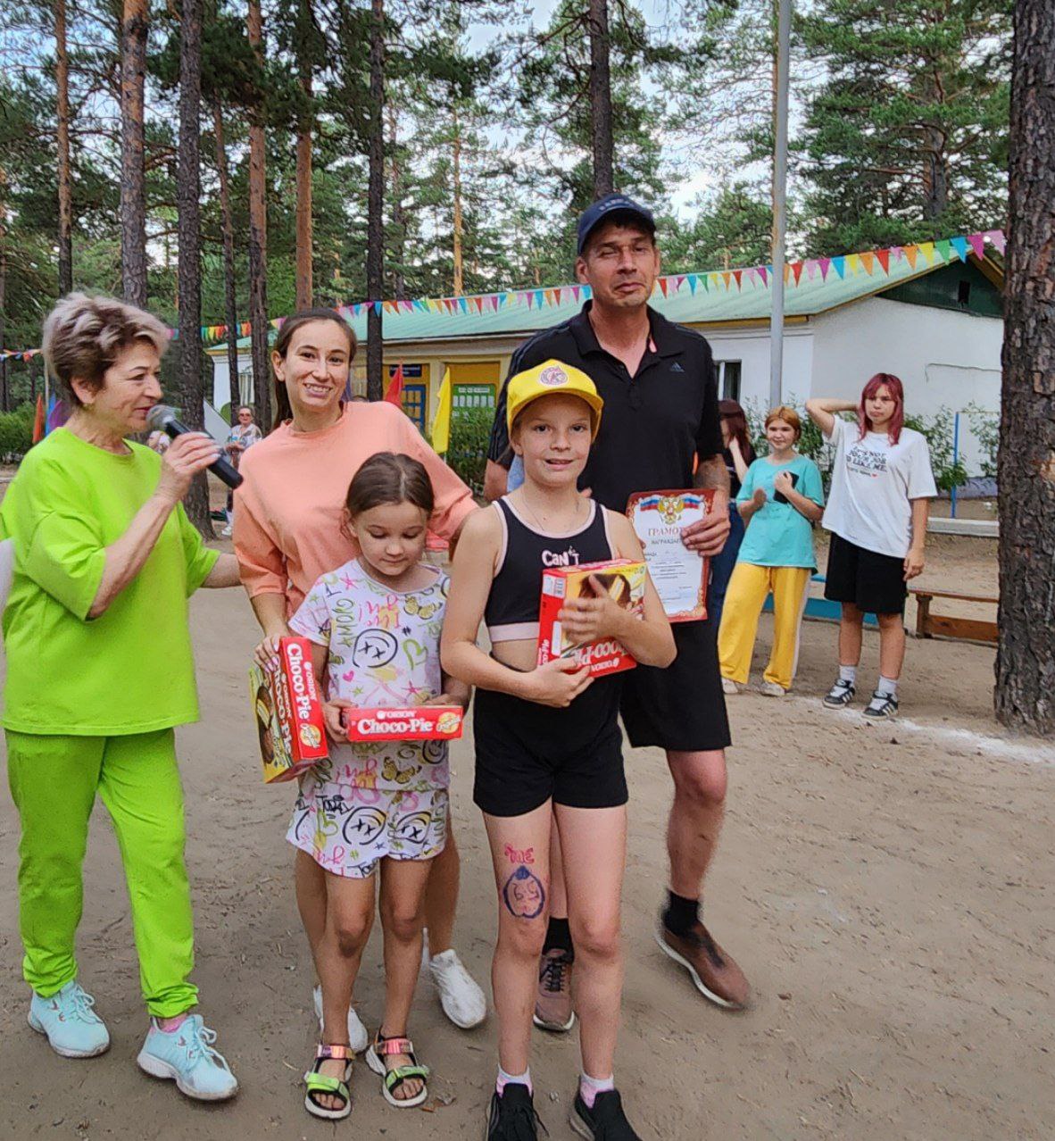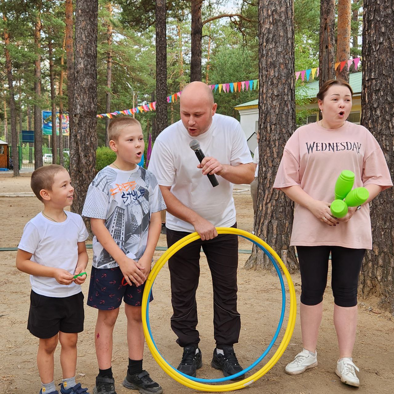 Спортивные забавы «Моя семья» были организованы для детей и их родителей 19 июля в ДОЛ «Серебряный бор». В честь Года семьи – 2024, такие занимательные спортивные, а главное семейные эстафеты проводятся на каждой смене. Вот и вторая смена не стала исключением. В первой половине дня спортивные эстафеты проводились для отрядов, получилось шесть смешанных команда от 6 до 15 лет. Ребята не смотря на возраст, переживали друг за друга, каждая команда хотела победить. Лучшие спортсмены были награждены сладкими призами. К 19.00 ребята ждали в гости своих родителей для участия в спортивных семейных стартах «Спортивные забавы». В лагерь приехали для участия 9 семей. Победили семьи: Рудиченко, Зайцевых и Пугачевых. Все участники не остались без внимания. Награждены, заряжены позитивом и хорошим настроением.