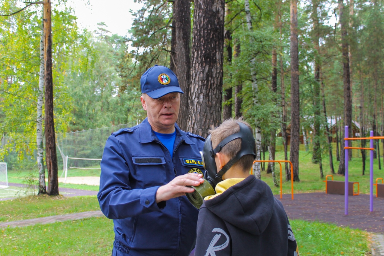 В музее ребята познакомились с различными средствами защиты, включая противогазы, и смогли примерить их.