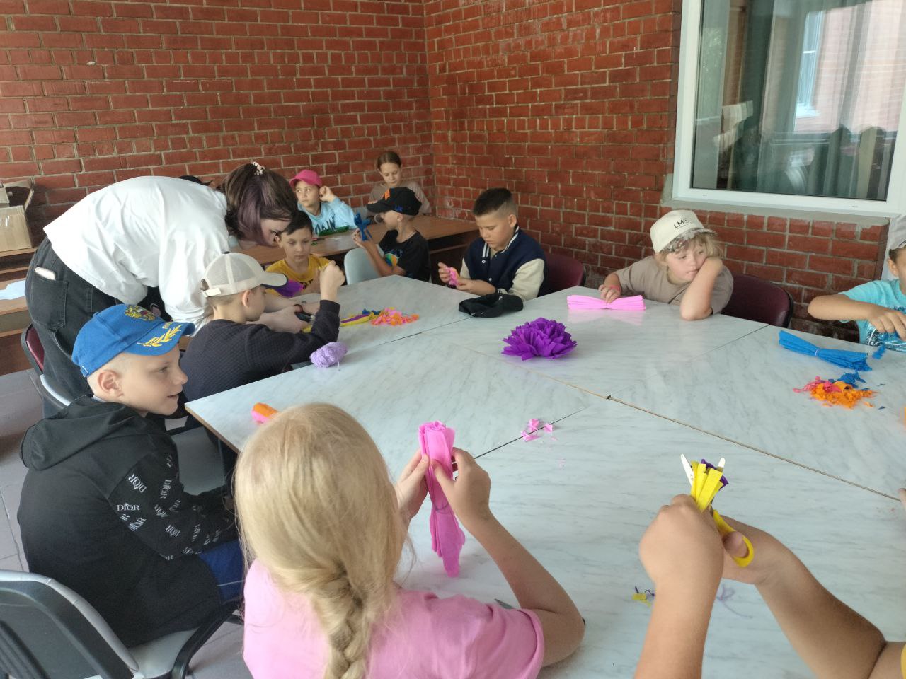 С сегодняшнего дня свою работу начинает ИЗО-студия! На своем первом занятии дети научились делать красивые пушистые цветочки, котоорые в дальнейшем станут прекрасным дополнением к оформлению сцены